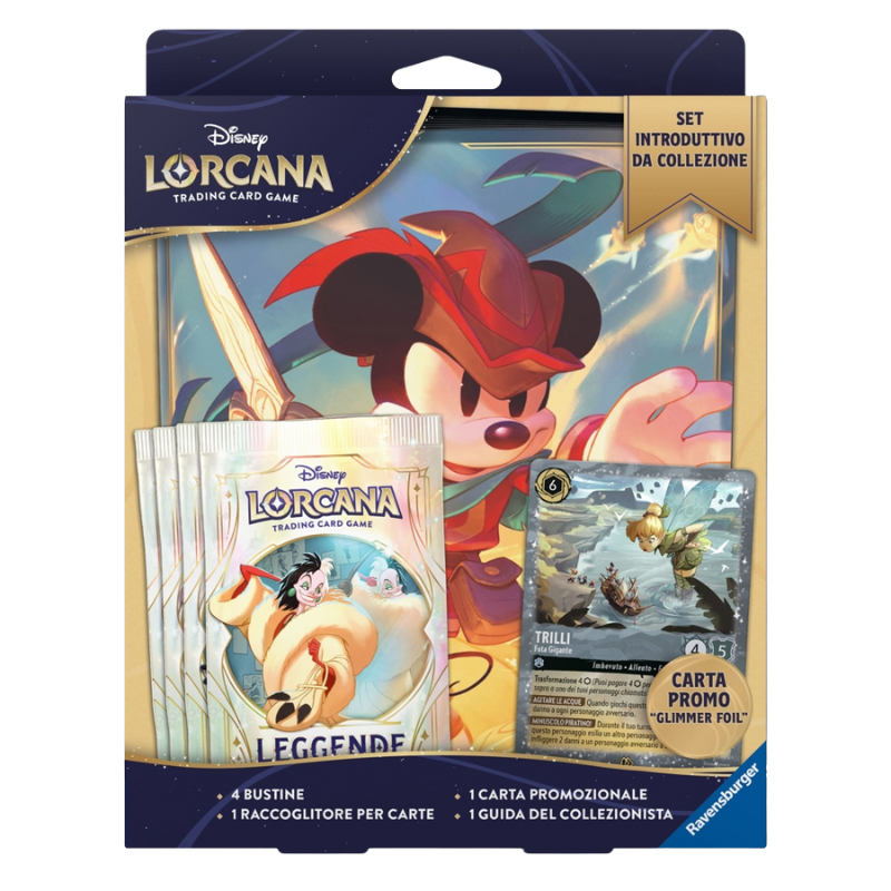 Con tutto quello necessario per dare via a una collezione, questo Set Introduttivo da Collezione è la maniera perfetta per gli appassionati Disney per iniziare il loro magico viaggio come collezionisti di Disney Lorcana.