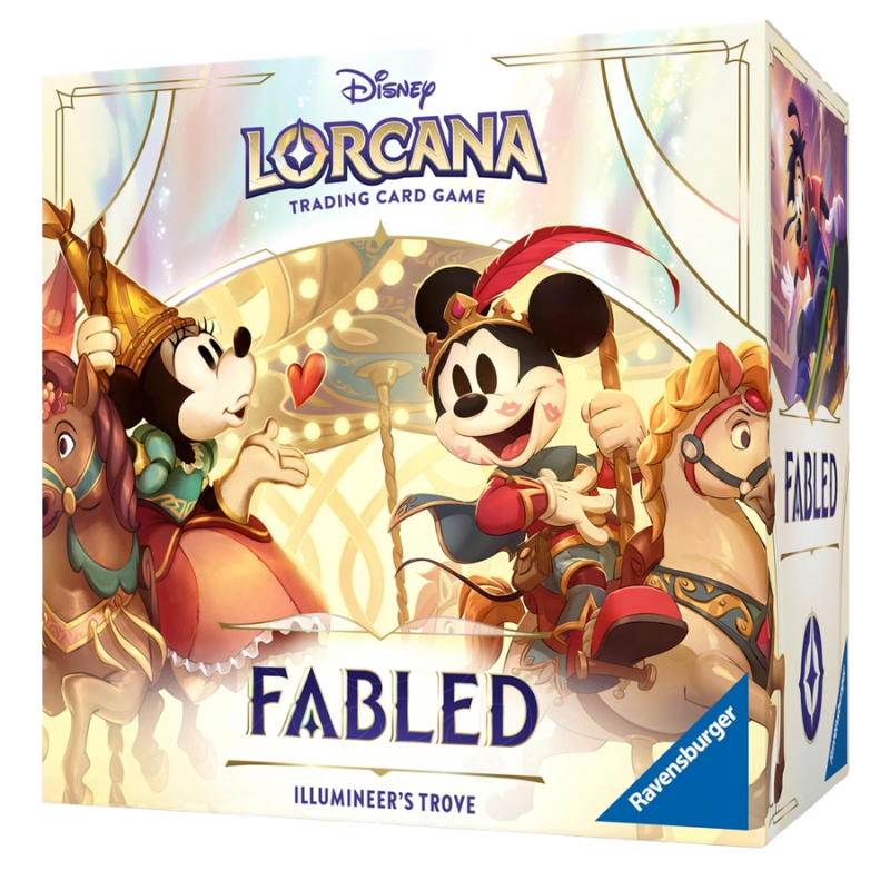 Il tesoro definitivo sia per i collezionisti che per i giocatori, l’Illumineer’s Trove include una scatola di stoccaggio completamente illustrata con sei divisori per le carte per tenere le tue carte Disney Lorcana TCG al sicuro e organizzate per inchiostro. L’Illumineer’s Trove contiene anche otto bustine e ti aiuta a tenere traccia dei danni sui personaggi e sui luoghi con sei dadi tematici, uno per colore d’inchiostro. Con il contatore di leggenda a rotella, i giocatori non metteranno mai in dubbio quanto vicini sono a reclamare una stella magica, potendo tenere traccia con facilità dei loro progressi verso la vittoria!