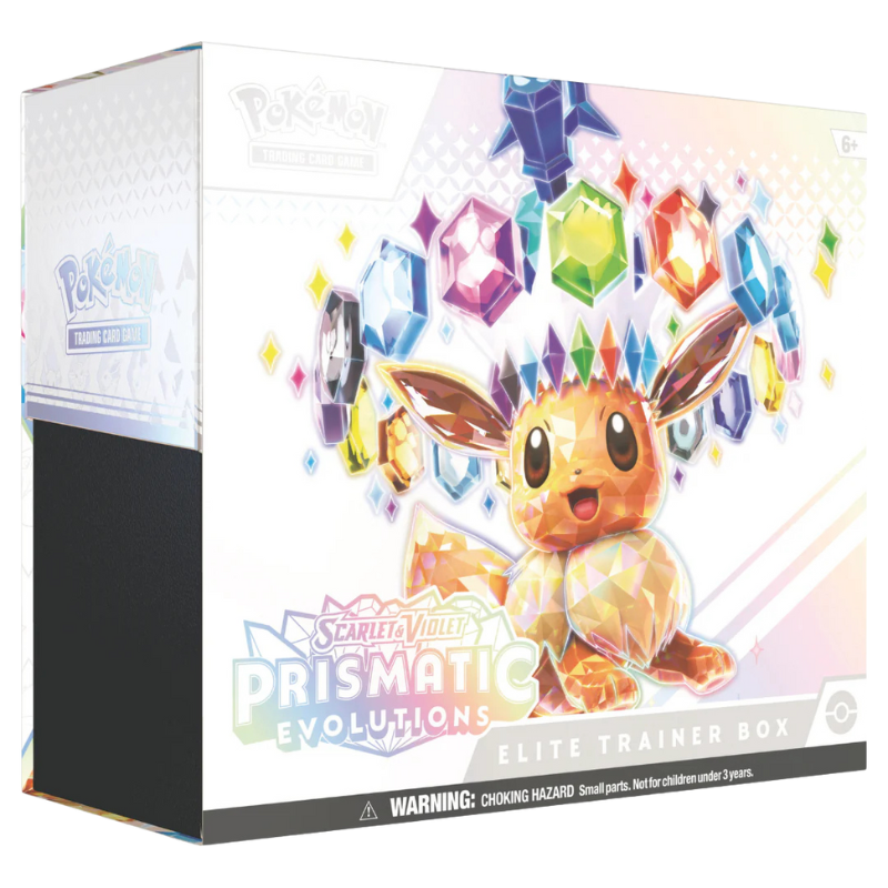 Colori astrali illuminano Eevee e i suoi amici! Manto morbido e spirito ardente, tocco glaciale e sembianze chimeriche: nel cuore degli Allenatori un posto speciale è occupato da Eevee e le sue evoluzioni, e ognuno di questi Pokémon sfoggia nuovi fantastici poteri nelle vesti di Pokémon-ex Teracristal Astrale. Scoprili e nel frattempo ricerca anche un tesoro tutto tuo tra una moltitudine di Pokémon-ex provenienti da Paldea e oltre. Gemme scintillanti e trame nascoste ti aspettano alla fine dell’arcobaleno nell’espansione Scarlatto e Violetto - Evoluzioni Prismatiche del GCC Pokémon!