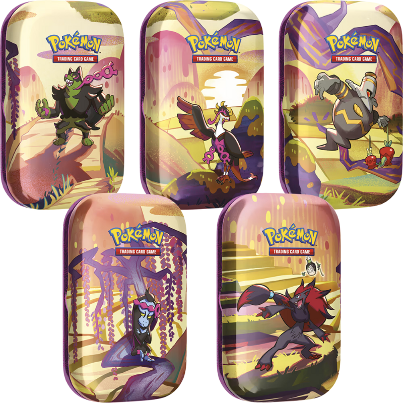Ciascuna miniscatola da collezione contiene due buste dell’espansione Scarlatto e Violetto – Segreto Fiabesco del GCC Pokémon, un foglio di adesivi e una carta raffigurante l’illustrazione presente sulla scatola.